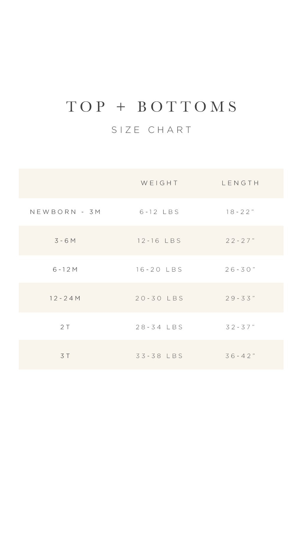Good things come in pairs and our tops + bottoms are no exception. They’re made from our signature silky-soft material for a stretchy, comfy fit with functional buttons and fold-over waistband for room to grow (or to wear high-waisted). Say goodbye to socks that slip right off with built-in footies (on the newborn size only) to keep those tiny toes warm without the fuss. Unbelievably sweet mixing & matching approved.