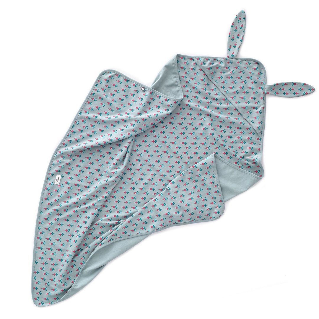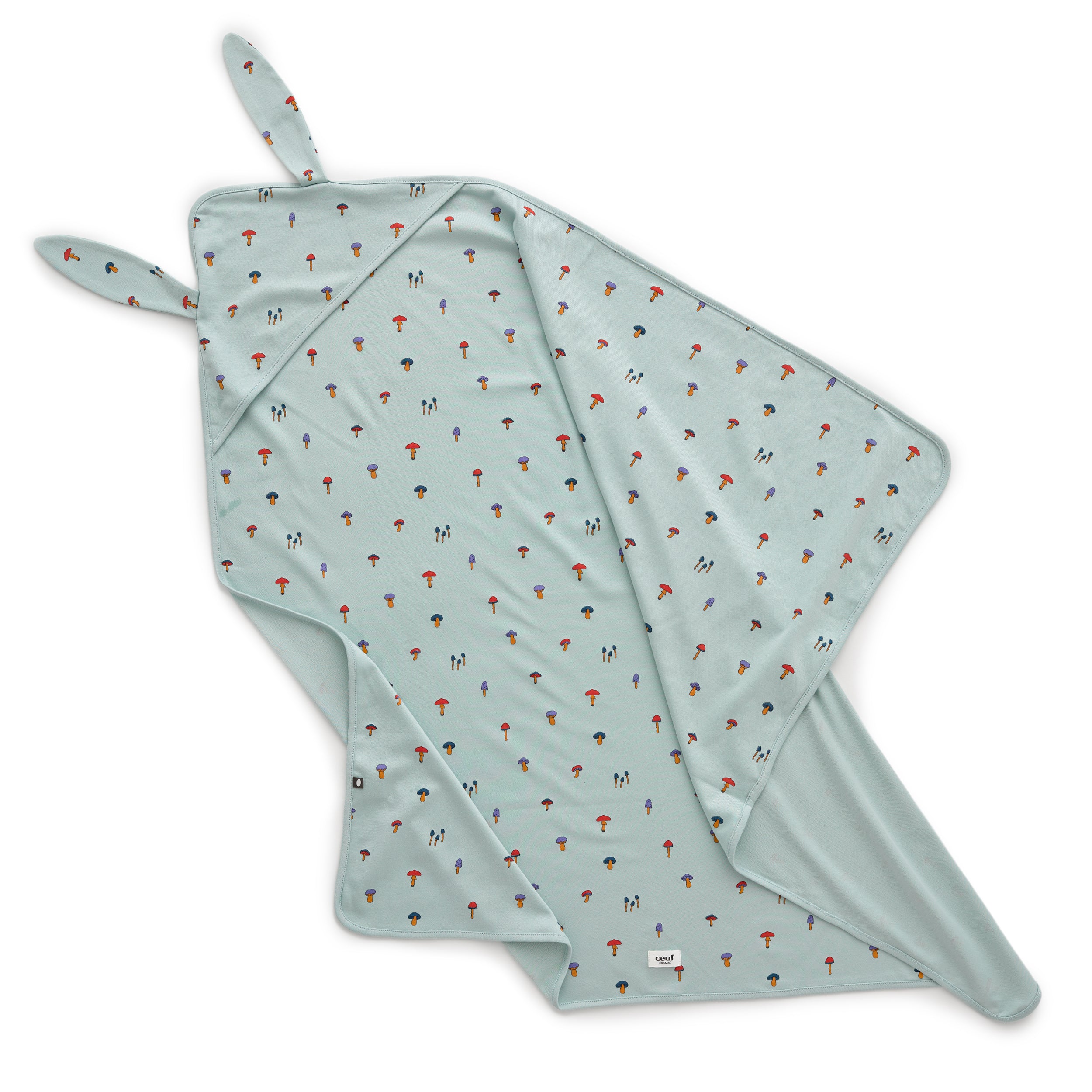 An extremely soft blanket that is also extremely cute, with hood and bunny ears. 100% organic pima cotton. Pima cotton excels in fiber length, strength and durability. It is breathable and hypoallergenic in addition to having natural antibacterial properties.