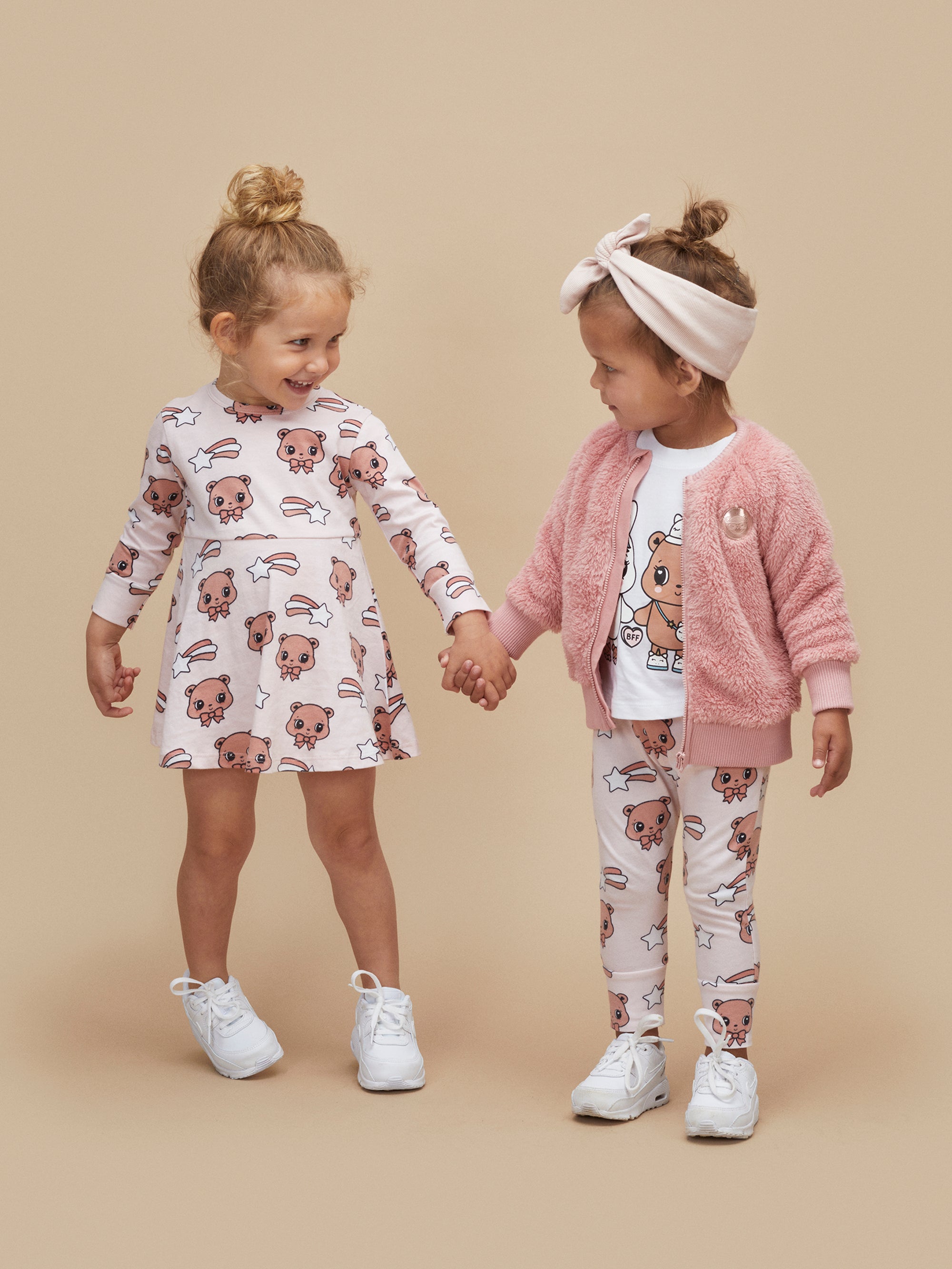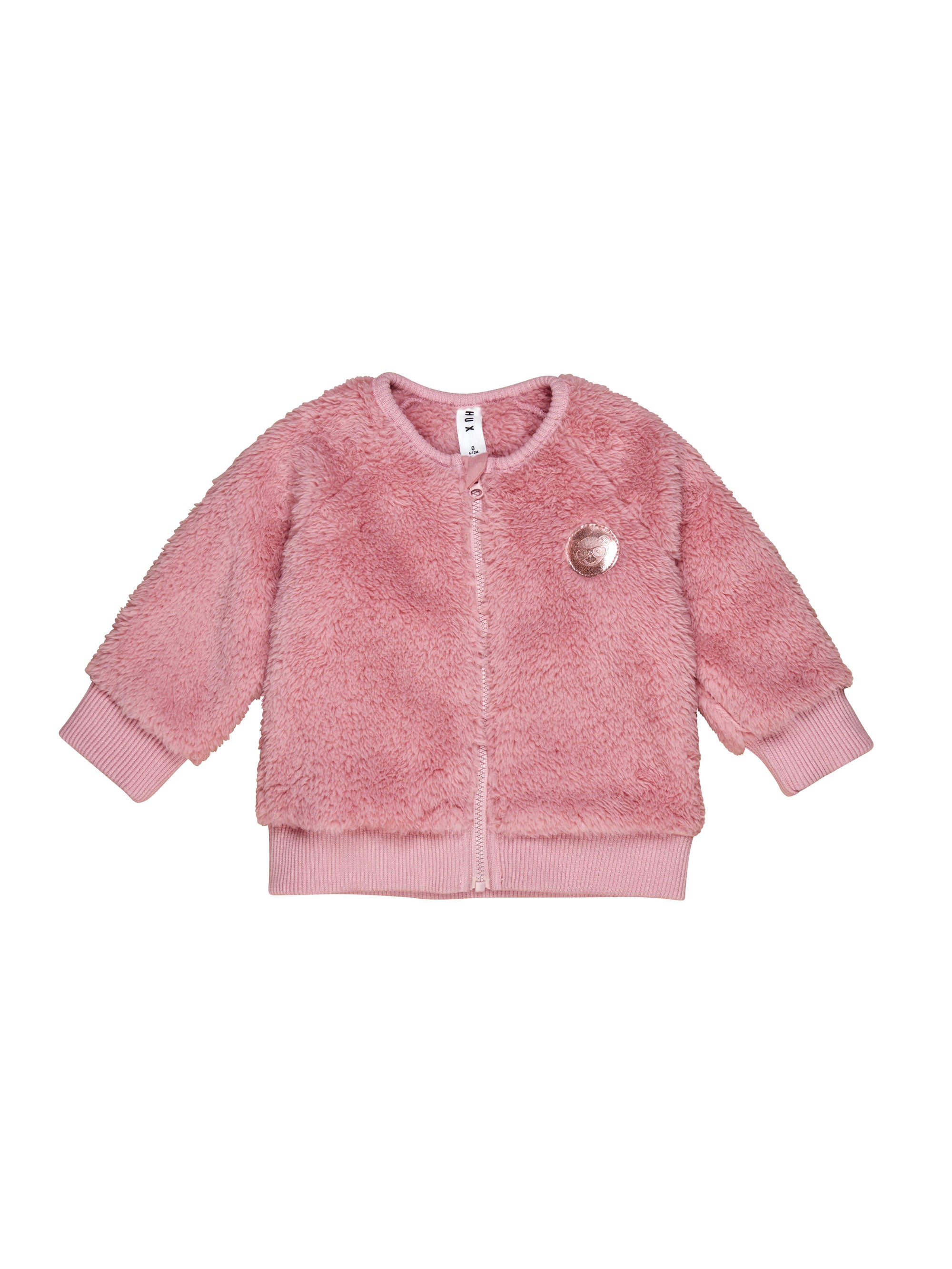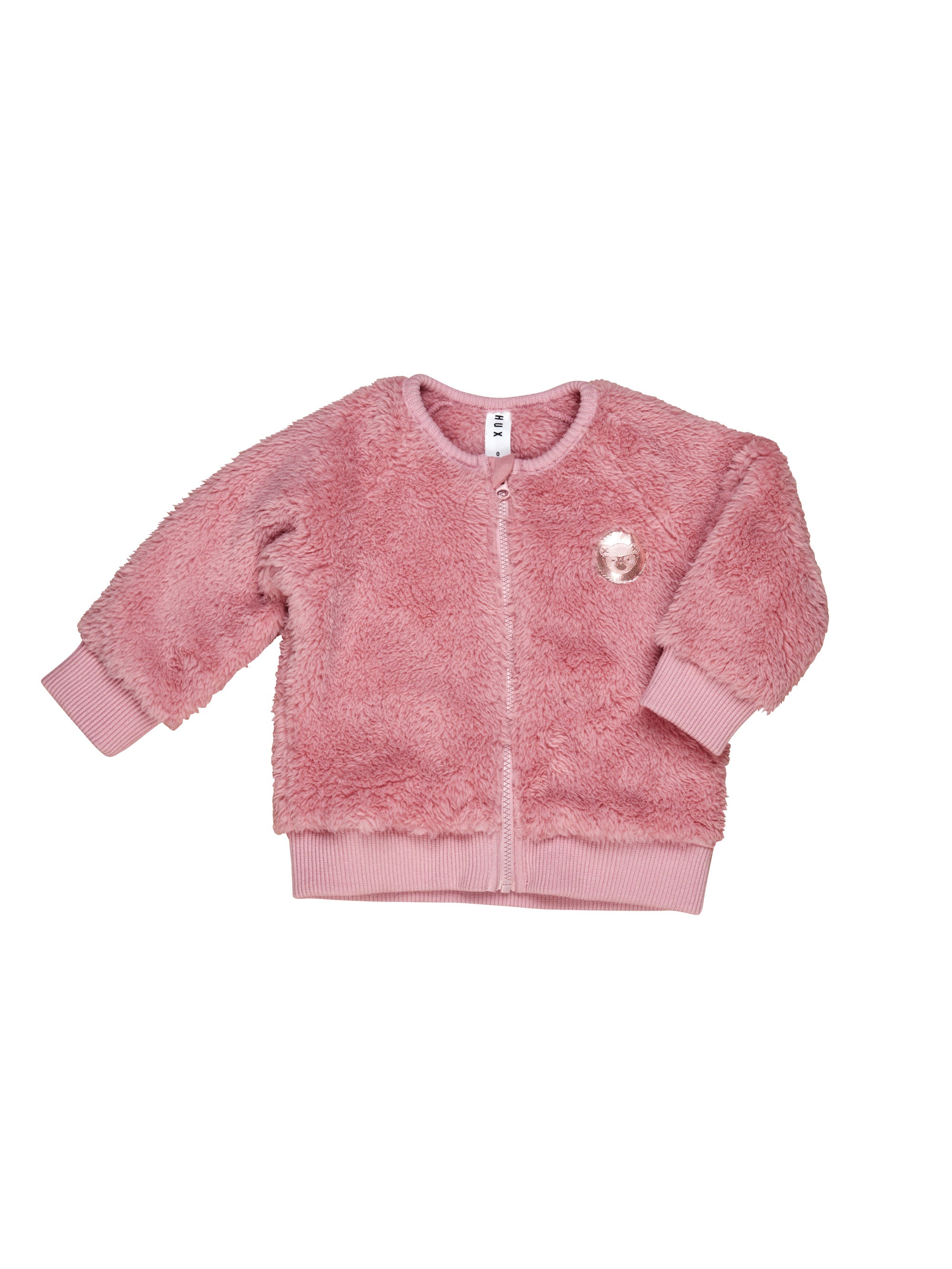 - Soft and furry sweat jacket with front zipper and metallic pink huxbear patch