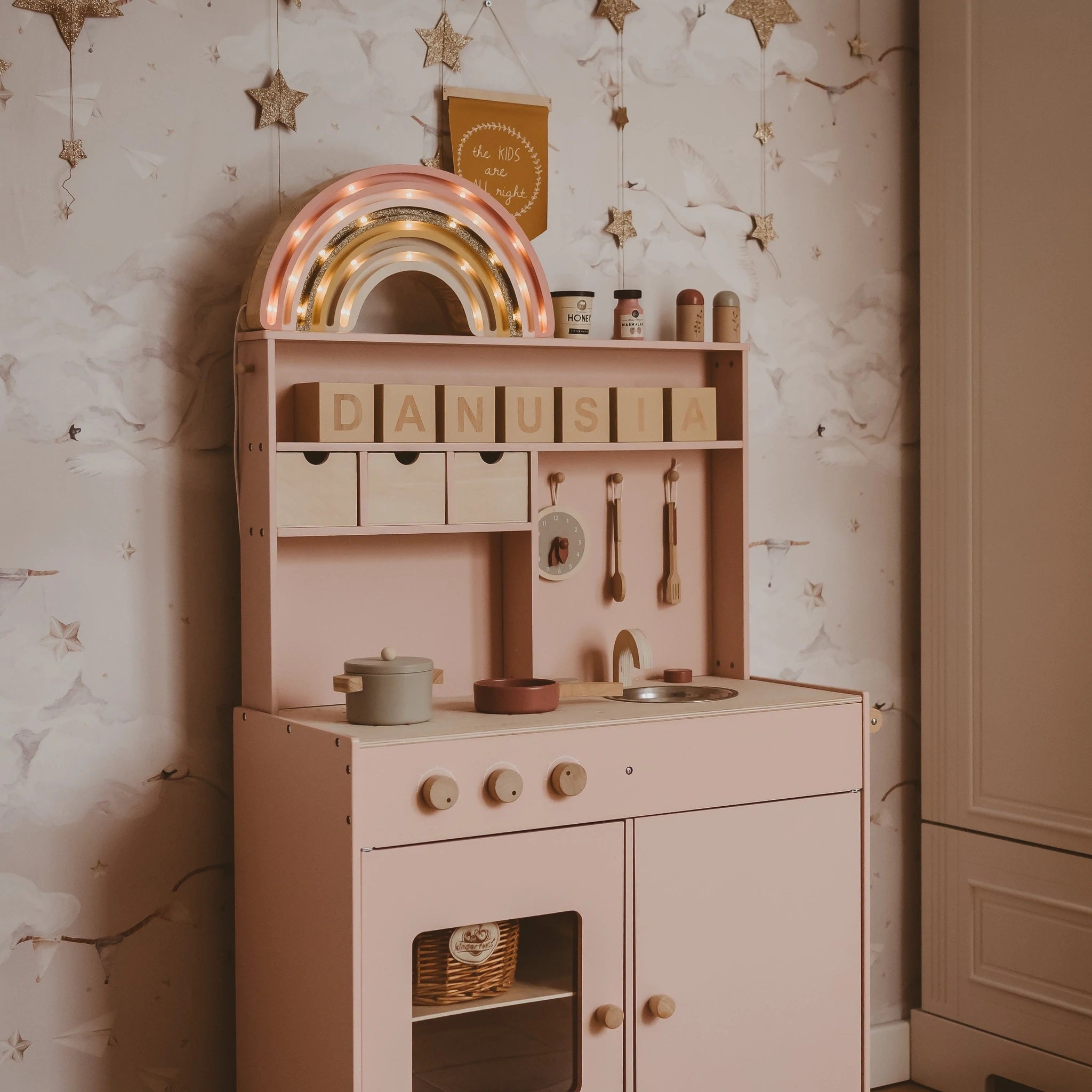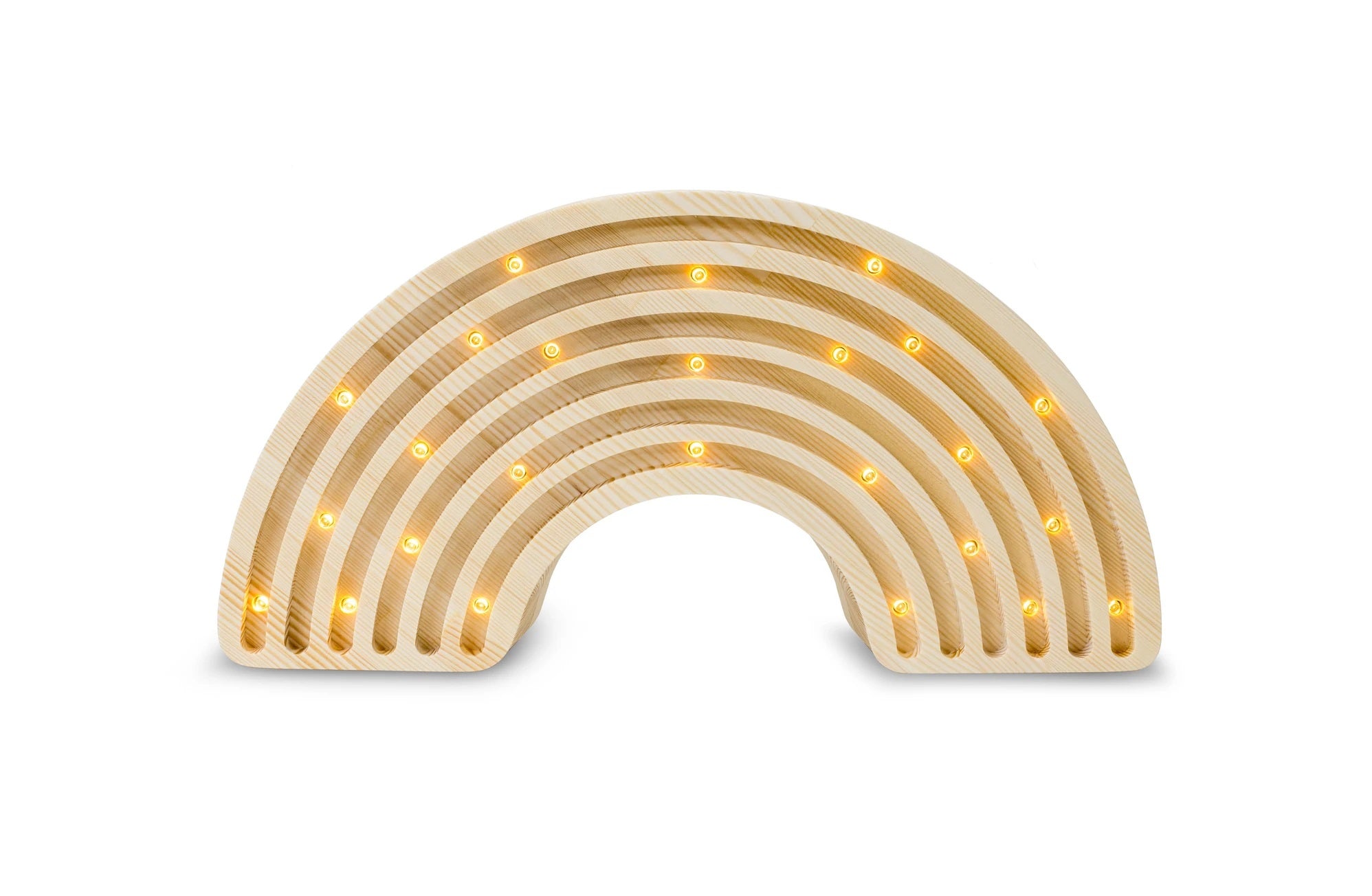 This high-quality children's night light is handmade from 100% natural pinewood, making it as strong and durable as it is beautiful. A kaleidoscope of colorful dreams awaits your little one when they fall asleep next to this Little Lights Rainbow Lamp. Awaken the feeling of natural wonder in your home by ordering now!
