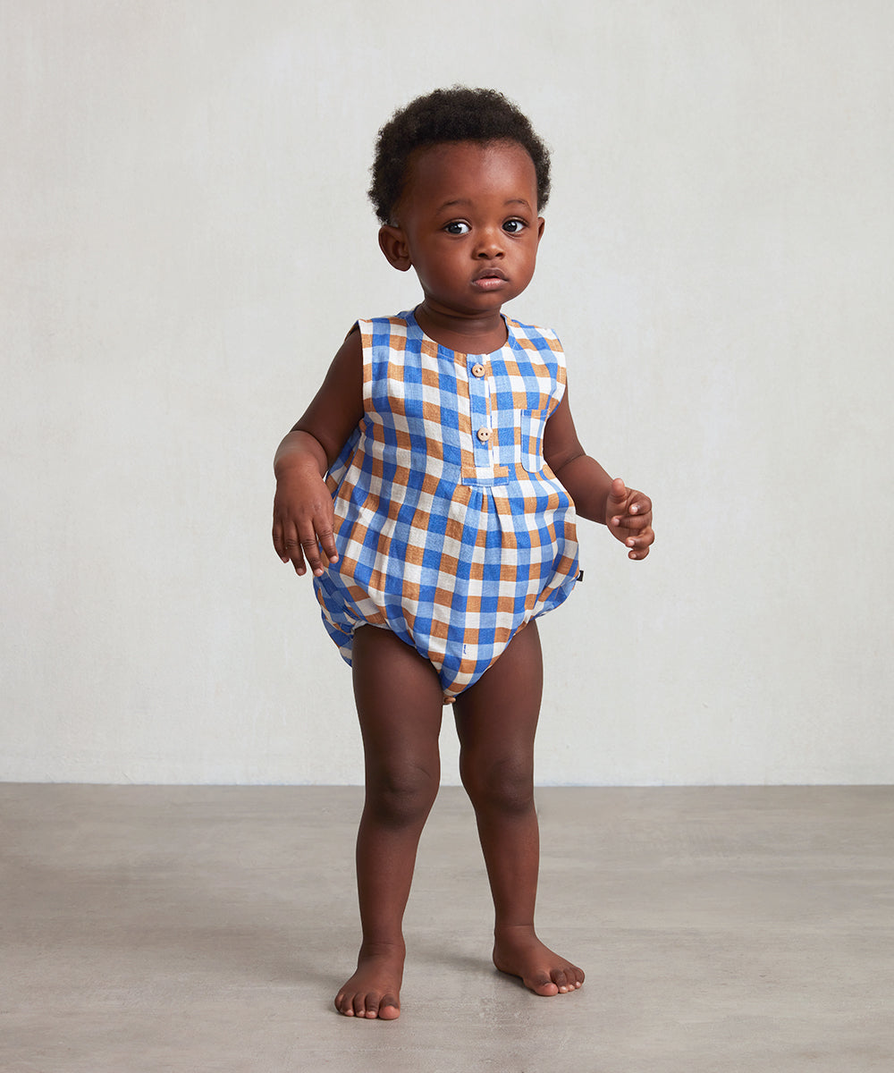 Does it get any cuter? A lightweight but durable linen pocket romper will keep your little one breezy during the hottest summer days.