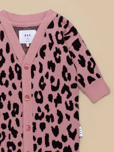 Leopard Knit Cardi - Dusty Rose