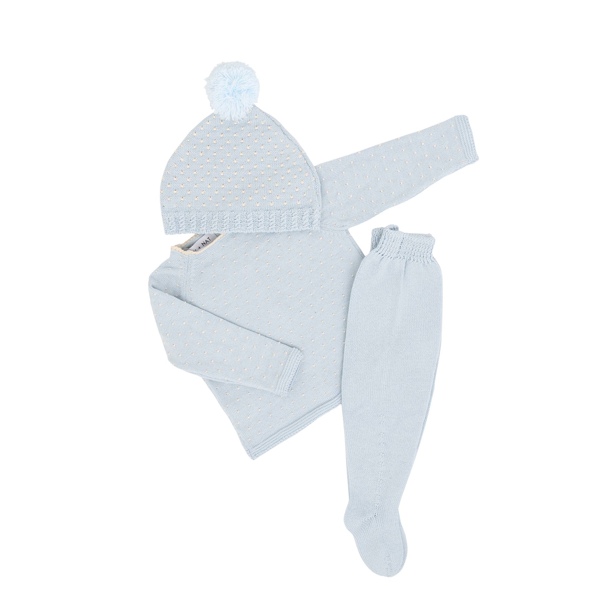 Cotton 3 Piece Knit Gift Set - Sky Blue