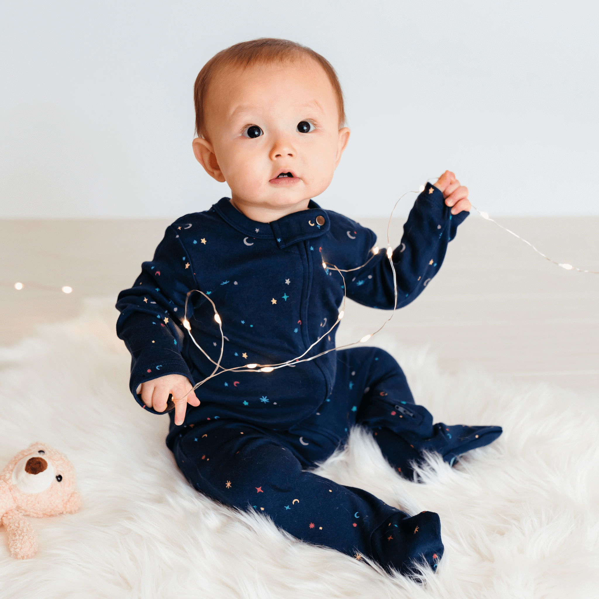 "Pawprints in the Park" Blue Dog Pima Baby Pajama Onesie