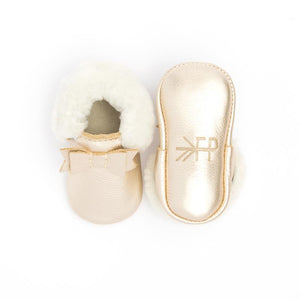 Shearling Bow Moccasin Mini Sole - Rose Gold