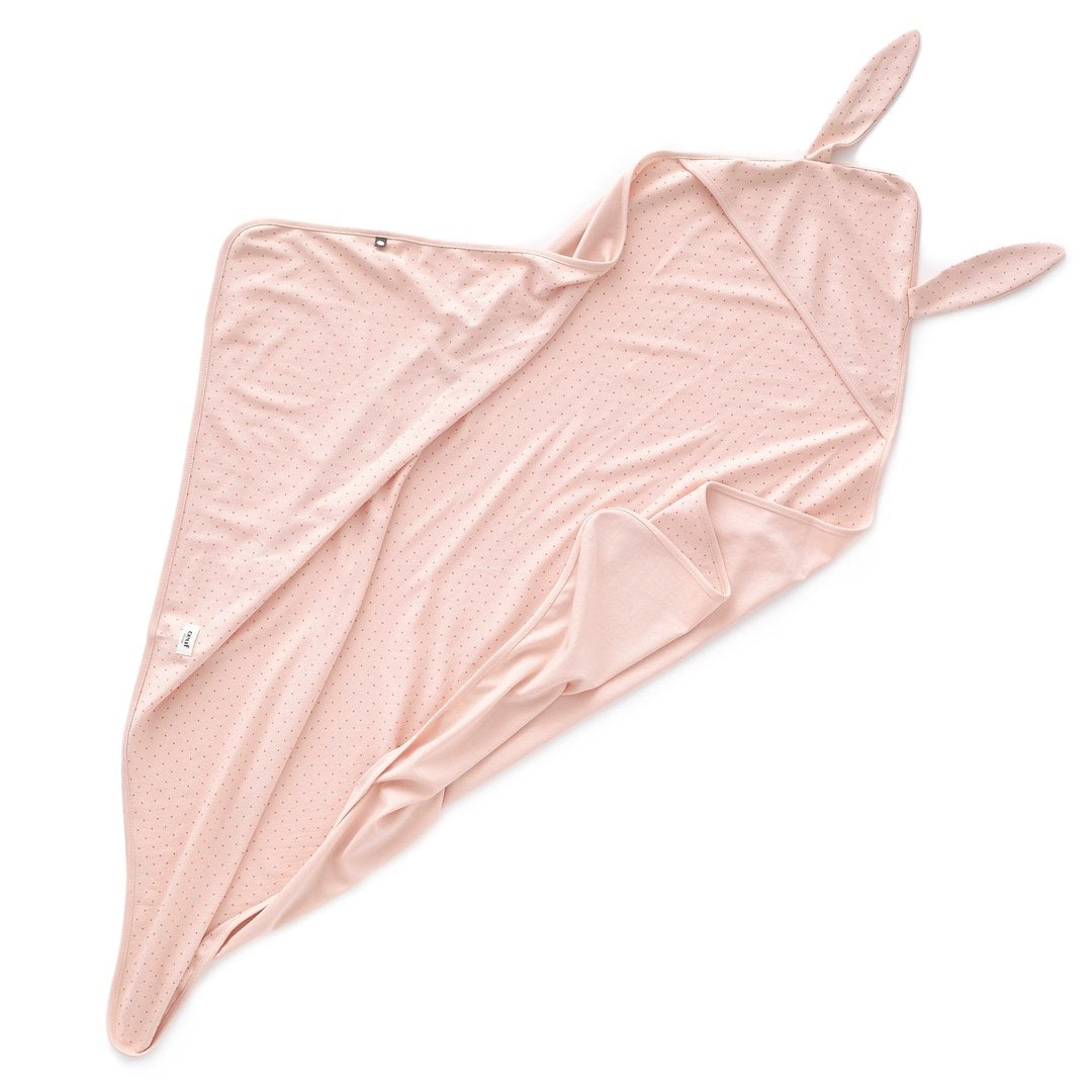 An extremely soft blanket that is also extremely cute, with hood and bunny ears. 100% organic pima cotton. Pima cotton excels in fiber length, strength and durability. It is breathable and hypoallergenic in addition to having natural antibacterial properties.