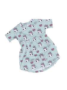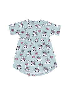 - Super soft, premium organic cotton jersey drop back swirl dress with all over bunny love prin