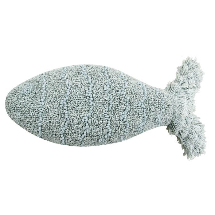 Its shape and blend of textures will make this fish a favorite with kids and adults alike! Washable cushion with fish-shaped outline, tightly-woven cotton on the outside and with 100% polyester filling of the finest quality. The entire exterior has been previously dyed in aqua blue and on one side of the figure's sides, cotton yarns have been applied using the chenille and loop technique to create a fish scale effect. At the tail, cotton yarns have been woven in the same color to imitate a fish fin. This cushion is, without doubt, original and fits in with any kind of decoration and style, be it a kids' room or play room or the living room, sofa, armchair, etc. Discover the rugs from The Sea collection as well as the new blankets and wall hangings and ... give your home a revitalized look!