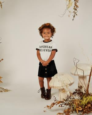 Soft ringer tee with contrast rib bands at neckline and sleeve openings. Baby sizes 0-3m thru 18-24m have snaps at the shoulder for easy changing.