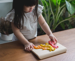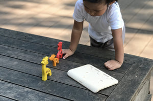 Have fun with this giraffe’s family! Your toddler can play with it as a puzzle which helps develop problem-solving and fine motor skills. They can also create a story from the figures to encourage imagination.