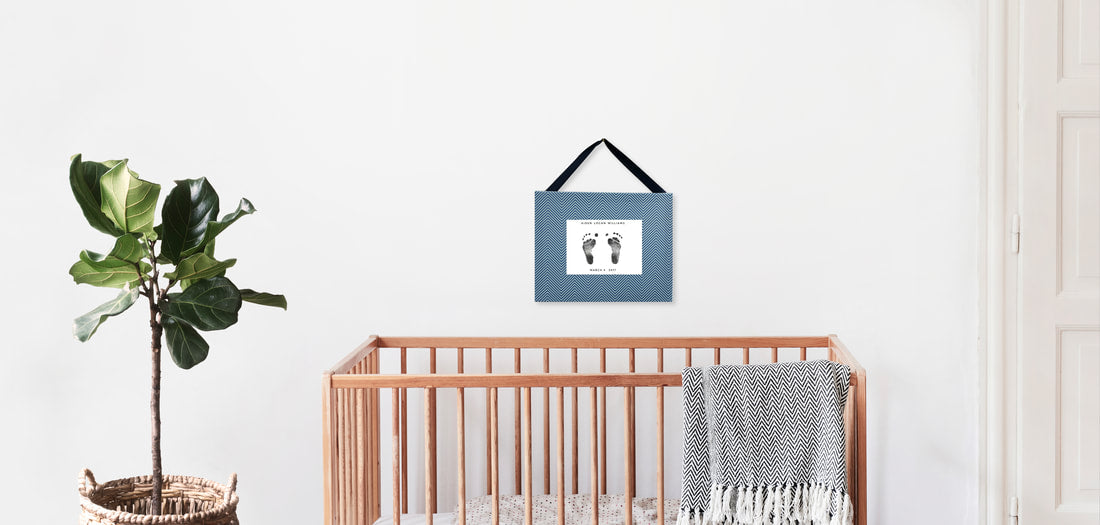 Just ink your child's hand or foot, stamp the canvas, and use the included stamps to personalize your little one's name and birthdate. The stamps are clear so you can see exactly where you're placing them. Easy peasy, right? If you make a mistake or your baby wiggles and things get smudged, don't stress - you can easily wipe off the entire print with a damp cloth or just touch it up with a Q-tip. Dries within 2-24 hours. We recommend using a clear non-yellowing poly paint to protect your print.