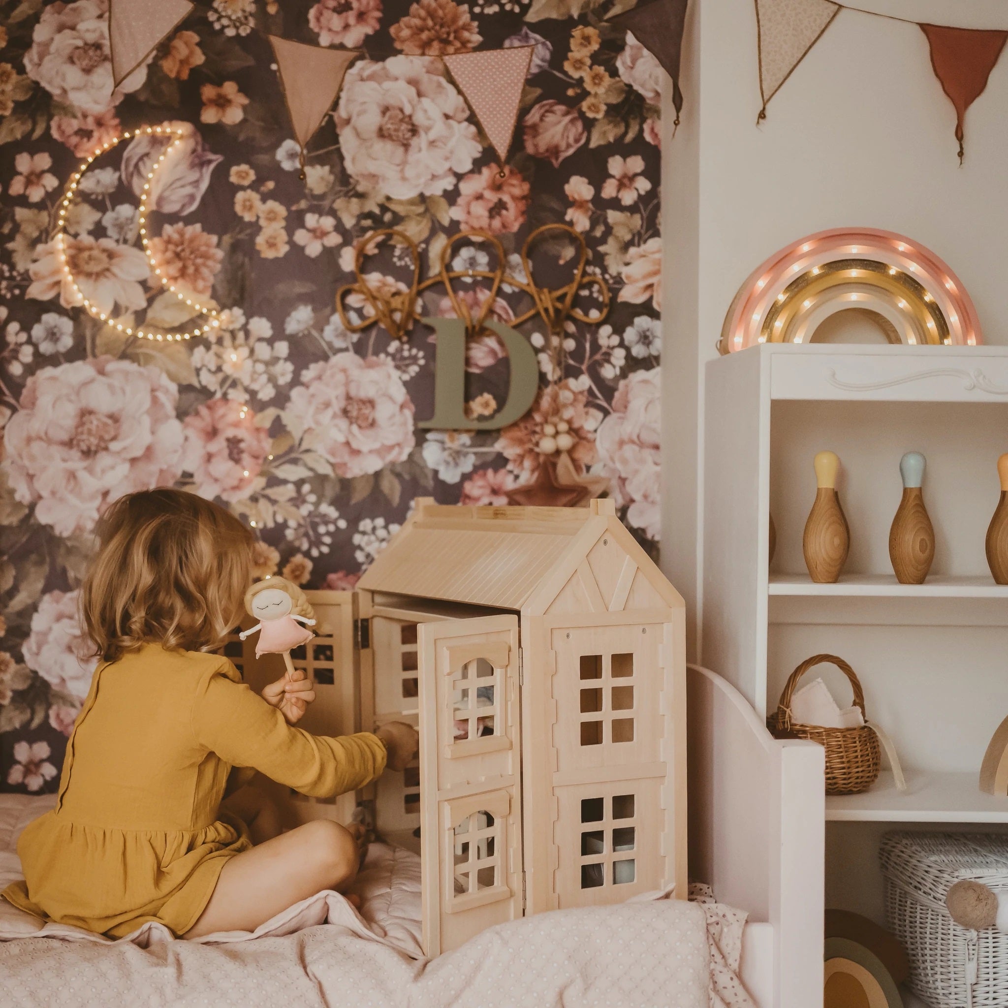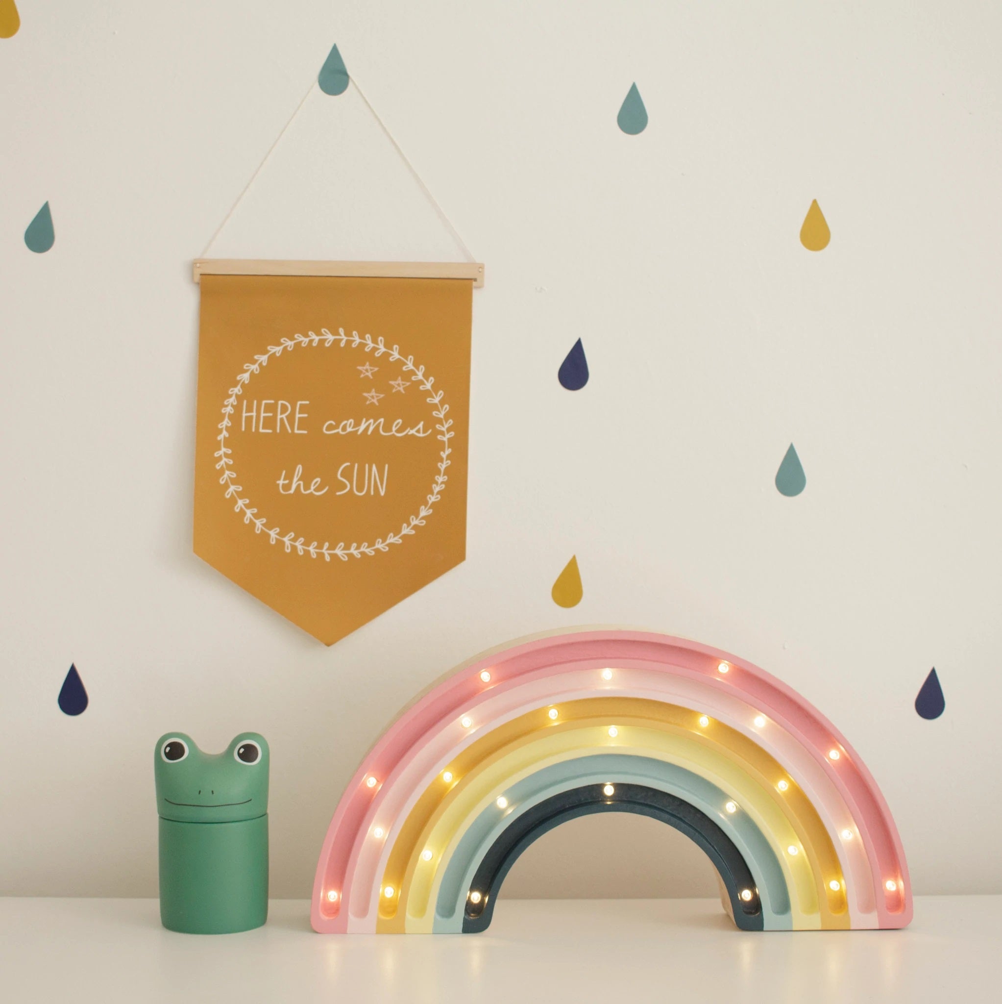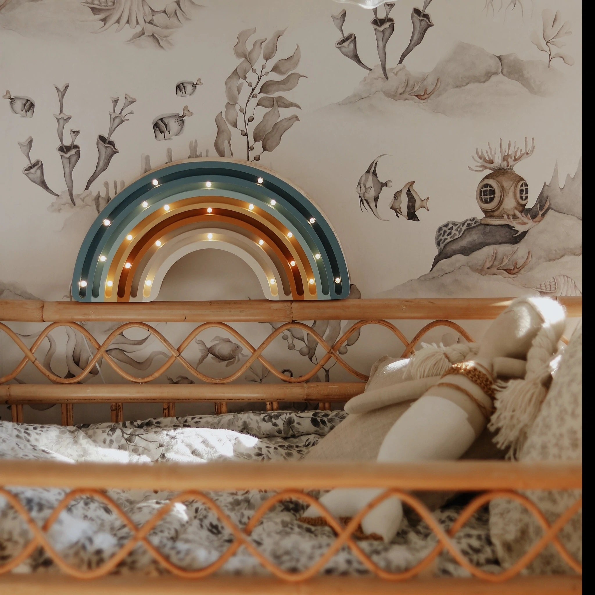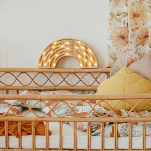 This high-quality children's night light is handmade from 100% natural pinewood, making it as strong and durable as it is beautiful. A kaleidoscope of colorful dreams awaits your little one when they fall asleep next to this Little Lights Rainbow Lamp. Awaken the feeling of natural wonder in your home by ordering now!