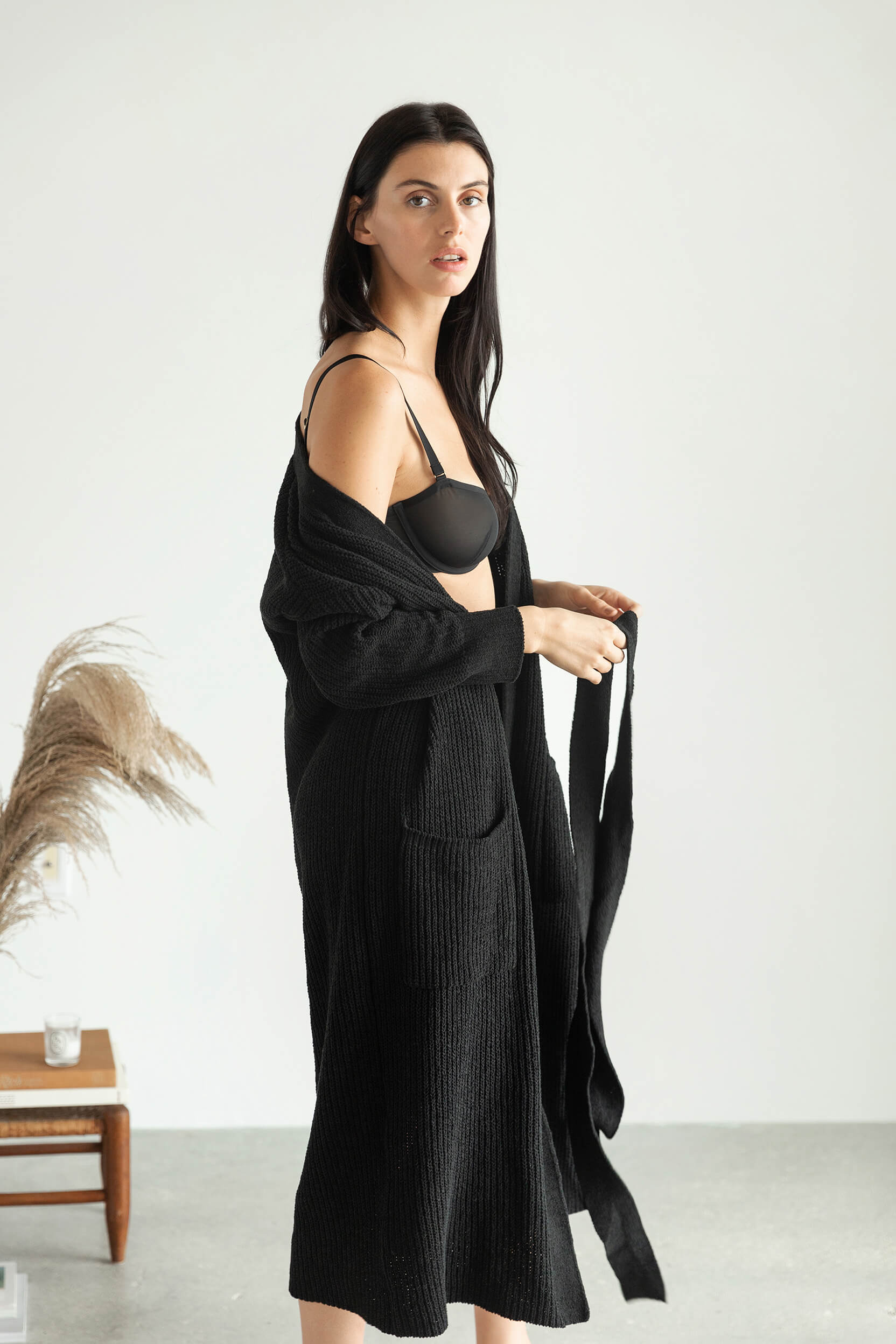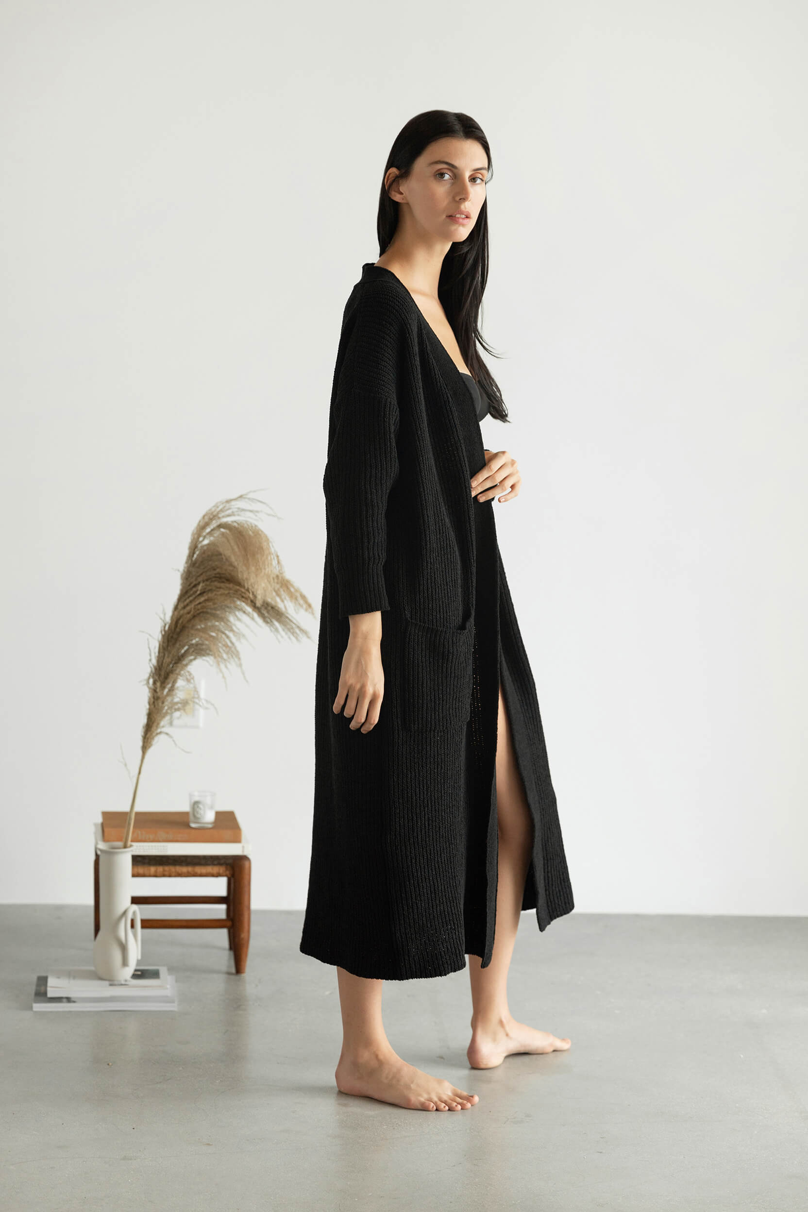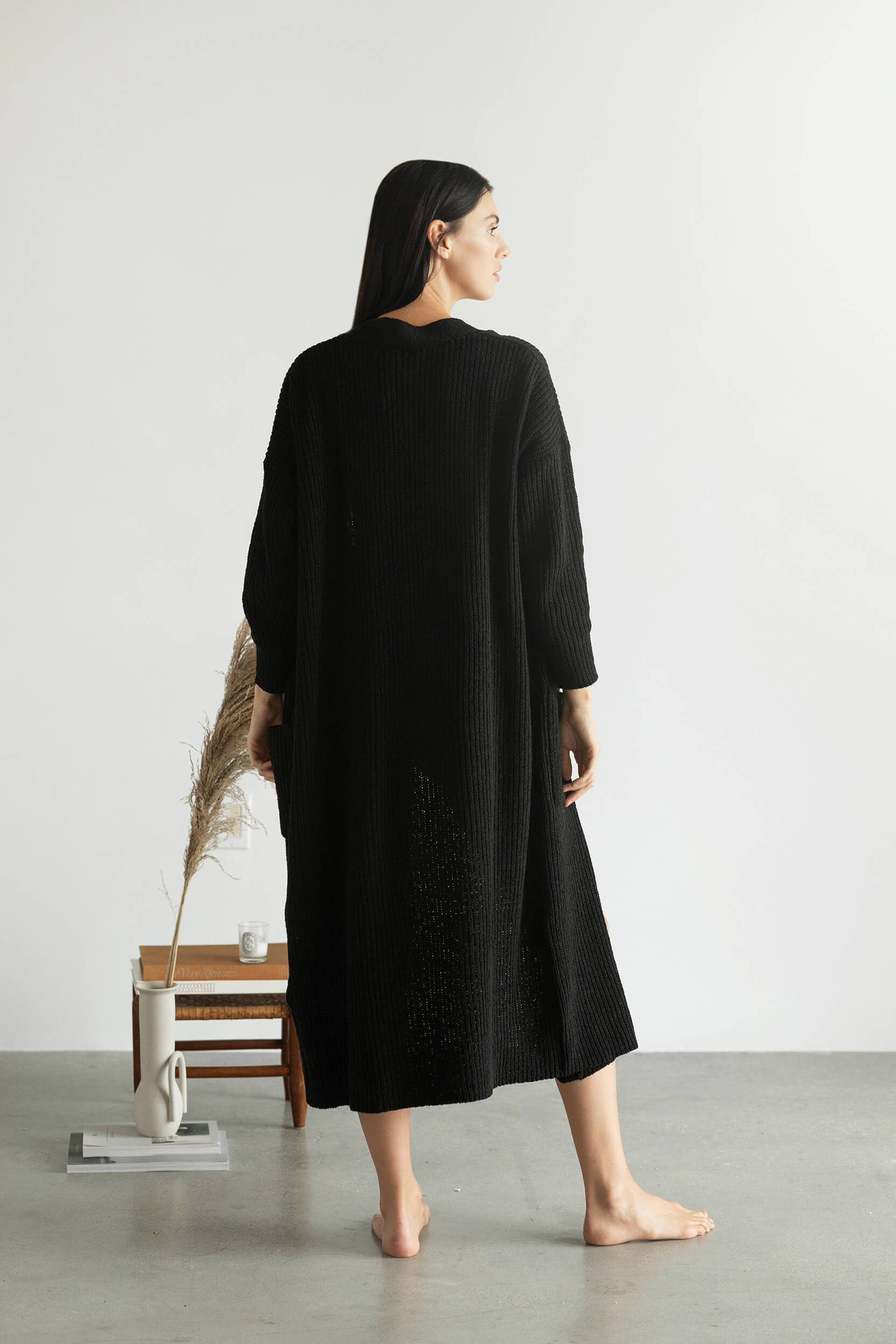 Nube Ribbed Long Cardigan - Caviar Black