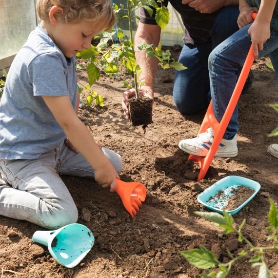 With this rake and digger, children can work beside mum and dad in the garden or give free rein to their creativity when at the beach or in the snow. With this multiple-piece, open-ended tool, endless learning, creativity and fun is guaranteed in the garden, at the beach, in the sandpit and in the snow! Not only can it be used as a rake or a spade, it can also be used as a funnel, a sieve and a water and sand writing tool. The possibilities are endless!
