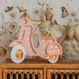 Our Little Lights Vespa Lamp inspires your little one to dream of overseas adventures. This high-quality children's night light is handmade from 100% natural pinewood, making it as strong and durable as it is beautiful. Add this elegant and exquisitely designed piece to your nursery or kid's room decor now!
