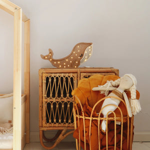 This high-quality children's night light is handmade from 100% natural pinewood, making it as strong and durable as it is beautiful. Our adorable Little Lights Whale Lamp is bound to inspire awe and breach your little one's imagination on sight. View one up close by ordering today!